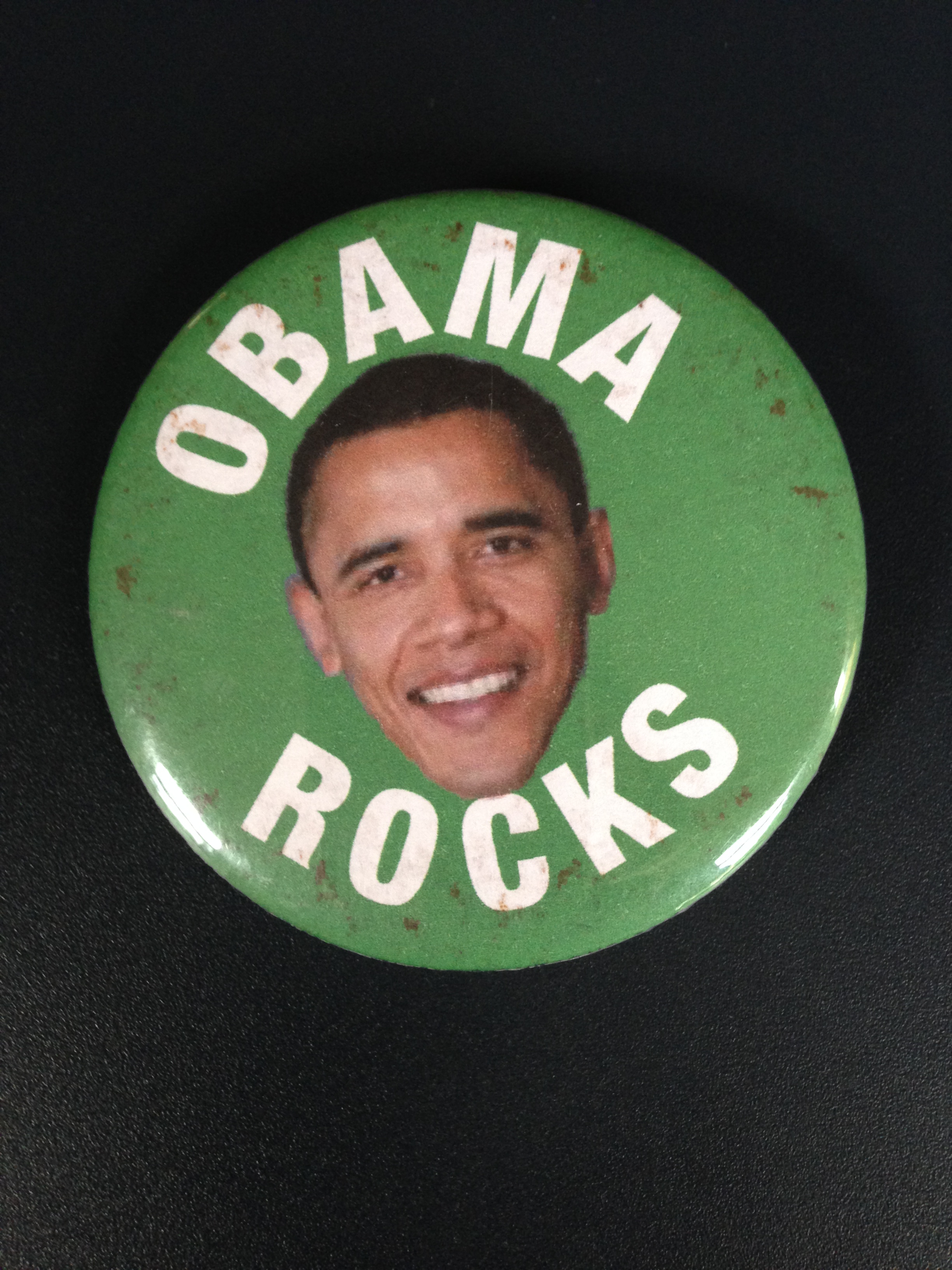 Een dag later vind ik op de drempel van mijn hotelkamer een envelop van haar, met daarin een button. Onder zijn glimlachende hoofd staat ‘Obama rocks.’