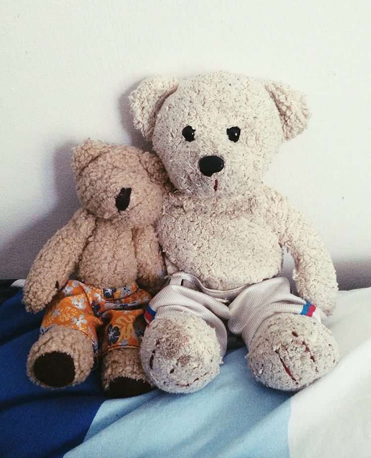 Deze is speciaal voor mijn jongste, vanwege alle keren dat we de slappe lach hadden door al die lijpe knuffels die bij hem in bed liggen. Ieder dier heeft een ander karakter en een eigen stemmetje. Deze column gaat over Grizzly, het chagrijnige ijsbeertje, ooit in Zweden gekocht en een nog kleiner beertje: Geraldo, de drugsdealer